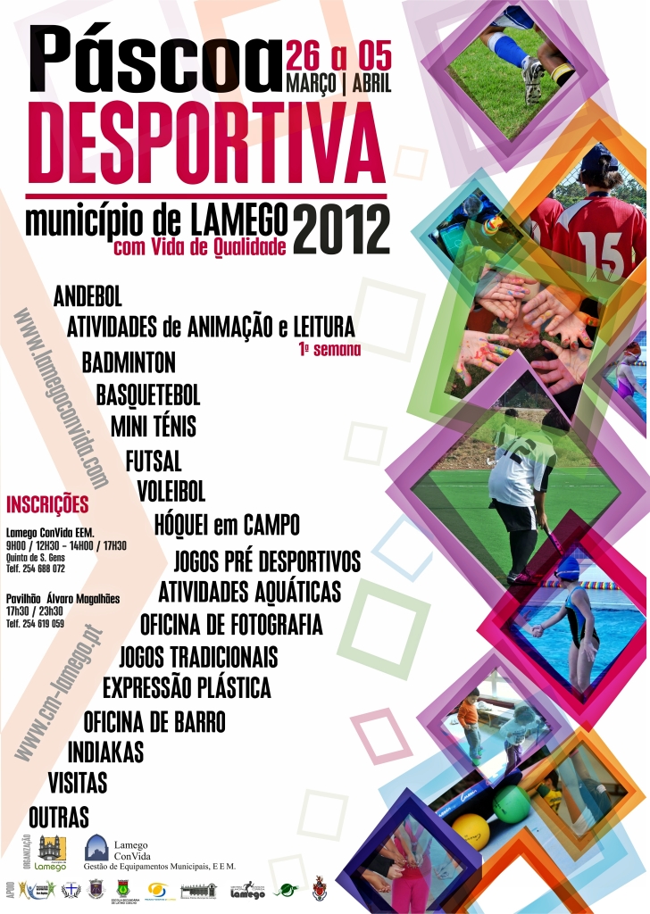 A Câmara Municipal de Lamego e a empresa municipal Lamego ConVida, EEM, voltam a organizar, especialmente para os mais novos, um aliciante programa de ocupação de tempos livres para o período das férias escolares da Páscoa. O projeto Páscoa Desportiva promete atrair, mais uma vez, a participação de muitas crianças, entre os 6 e os 14 anos de idade, para um vasto leque de atividades desportivas que decorrerão na Escola Secundária de Latino Coelho, nas Piscinas Cobertas, no Pavilhão Desportivo Álvaro Magalhães e na Biblioteca Municipal.