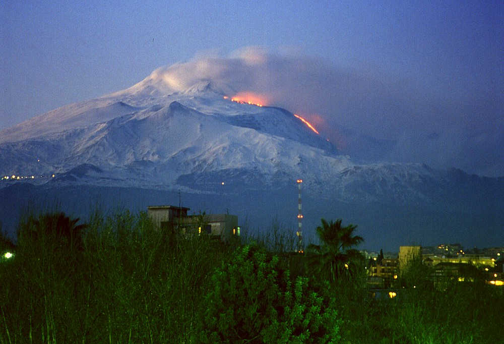 Apesar de frequentes, as pequenas erupções do Etna raramente provocam danos na região.