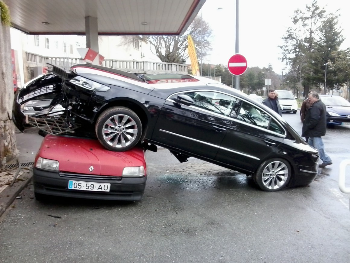 Carro de bispo de Bragança-Miranda cai de três metros de altura em cima de automóvel