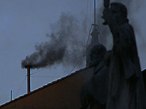 O fumo resulta da queima dos boletins de voto dos cardeais, a que é juntado um produto químico para que seja negro.