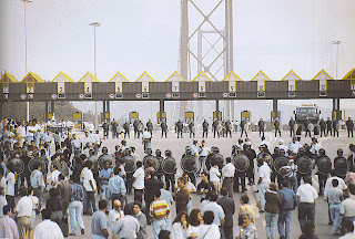 Por outro lado, “o trajecto da manifestação prossegue pela Ponte 25 de Abril, relativamente à qual, mesmo na parte integrada no território do concelho de Lisboa está subtraída a jurisdição da CML”, competido à Estradas de Portugal coordenar e gerir aquela infra-estrutura.