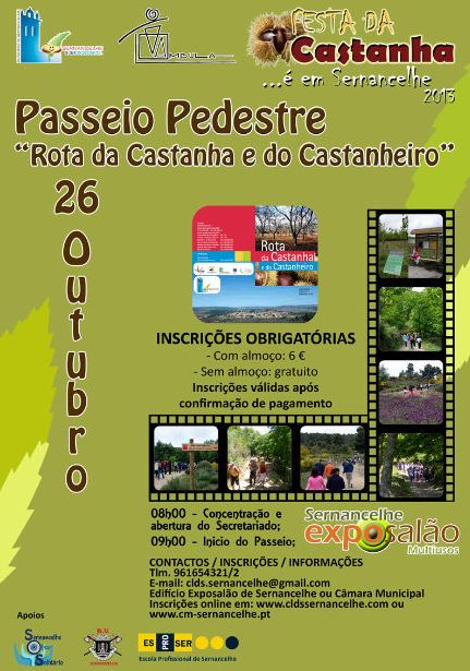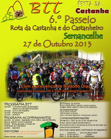 Sernancelhe promove, nos dias 25, 26 e 27 de outubro, a Festa da Castanha 2013. Considerado um evento exemplar na promoção da cultura e na dinamização económica do fruto castanha, assume uma componente desportiva cada vez maior, contando com um Passeio Pedestre, no dia 26, e um Passeio BTT pela Rota da Castanha e do Castanheiro, no dia 27, que são já referências, trazendo a Sernancelhe milhares de pessoas nesta época da apanha da castanha.