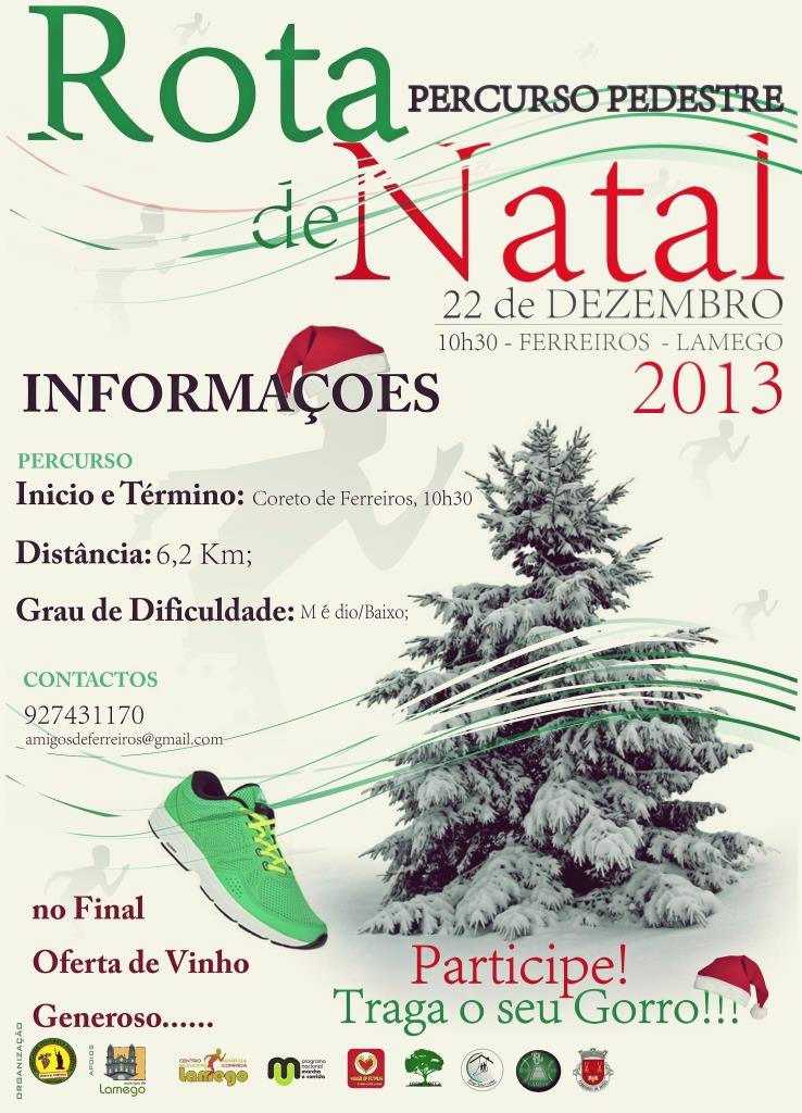 A poucos dias de ser celebrado o nascimento do Menino Jesus, a Câmara Municipal de Lamego, em parceria com o Centro Municipal de Marcha e Corrida e a associação “Amigos de Ferreiros”, organiza a Rota de Natal, uma caminhada de cerca de 6,2 quilómetros. A iniciativa decorre a 22 de dezembro, pelas 10h30, com partida prevista no Coreto de Ferreiros. A participação é livre, não sendo necessária inscrição prévia.