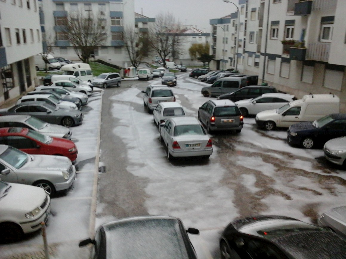Ainda não foi desta que nevou em Lisboa, mas o granizo que caiu, ao início da manhã desta sexta-feira, um pouco por toda a área metropolitana deixou algumas zonas cobertas por um manto branco. A forte precipitação causou inundações em várias zonas de Lisboa, onde a circulação rodoviária se tornou caótica, com vários acidentes motivados pela existência de lençóis de água nas estradas. Por causa do mau tempo, quase todo o país está sob aviso laranja.