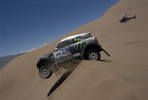 Peterhansel comanda com 48:45.45, com Roma a 26 segundos, Al Attiyah a 54.07 minutos. O quarto e primeiro "não Mini" é o sul-africano Giniel de Villiers, em Toyota, a 1:21.13 horas.
