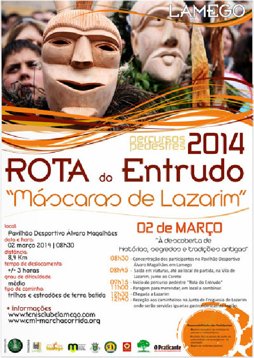 A secção de pedestrianismo do Ténis Clube de Lamego em colaboração com: Centro Municipal de Marcha e Corrida de Lamego; Lamego Convida; Ginásio House Of Fitness; Grupo Caminhar – Facebook ; Amigos de Ferreiros A.C.D; Revista – “O Praticante” ; Inovterra – Associação para o Desenvolvimento local; Junta de Freguesia de Lazarim e Câmara Municipal de Lamego, realiza no Domingo, dia 02 de março, a “Rota do Entrudo – Percurso das Máscaras de Lazarim ”. Este evento está enquadrado no programa oficial do Entrudo de Lazarim.