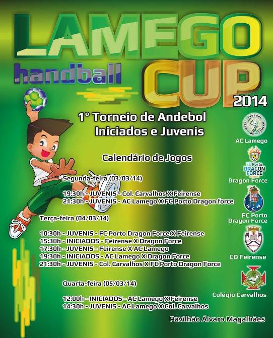 Entre os dias 3 e 5 de março, o Pavilhão Álvaro Magalhães vai receber a magia de uma das modalidades desportivas mais conhecidas no nosso país e uma das mais preferidas pela juventude. O torneio de andebol, Lamego Handball Cup 2014, junta na superfície de jogo equipas dos escalões de iniciados (nascidos entre 1999/2000) e juvenis (1997/1998) masculinos.