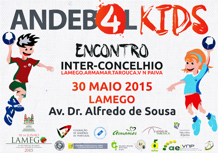 A realização do Encontro Inter-Concelhio de Andebol – ANDEB4LKIDS decorrerá no dia 30 de maio, na Av. Dr. Alfredo de Sousa. Para além de Lamego, os participantes serão oriundos dos concelhos de Armamar, Tarouca e Vila Nova de Paiva. O programa do encontro inclui, após a pausa de almoço, uma visita de grupo ao Castelo e à Cisterna de Lamego.