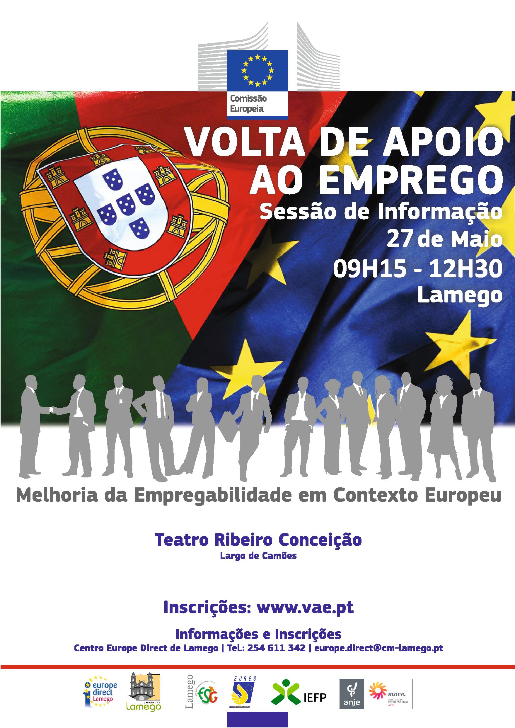 A Câmara Municipal de Lamego e o Centro Europe Direct local vão promover uma sessão de informação em Lamego, no próximo dia 27 de maio, para divulgar oportunidades de emprego e formação. A Volta a Portugal de Apoio ao Emprego chega a esta cidade, pelo terceiro ano consecutivo, com o objetivo de divulgar oportunidades concretas de emprego e de apoio à empregabilidade, contribuindo para responder àquela que é a principal preocupação dos cidadãos neste momento: o desemprego.