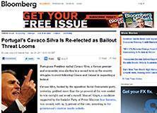 Na agência Bloomberg, a notícia sobre as eleições presidenciais adianta que “Cavaco Silva é reeleito numa altura em que cresce a ameaça” de Portugal “ter de pedir um resgate” financeiro internacional, como aconteceu com a Grécia e a Irlanda.