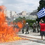 A situação agravou-se depois da votação do novo plano de austeridade com uma espécie de “guerrilha urbana” entre polícias e manifestantes indignados. Os prejuizos materiais incálculaveis.